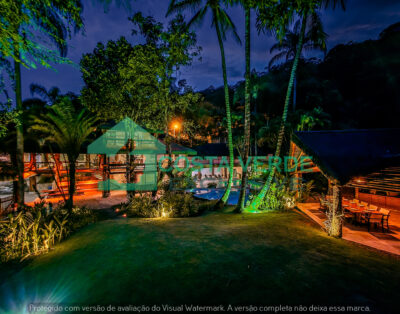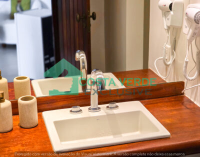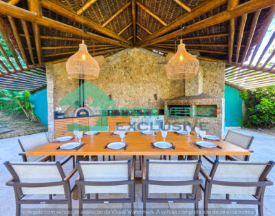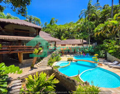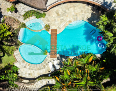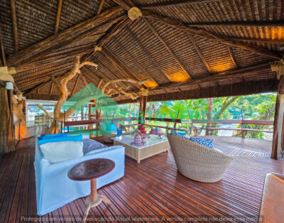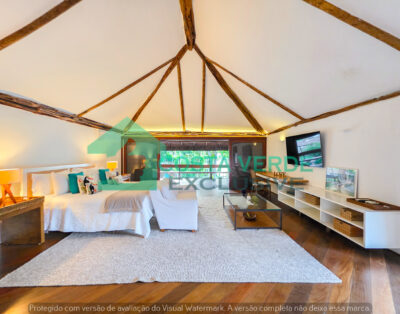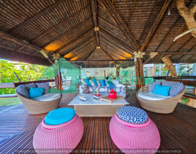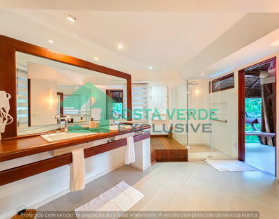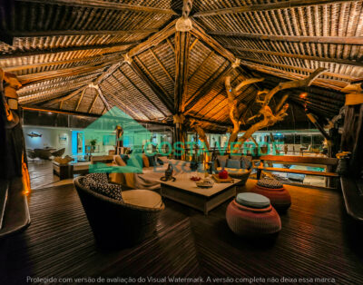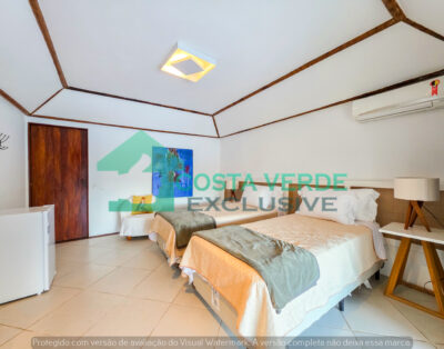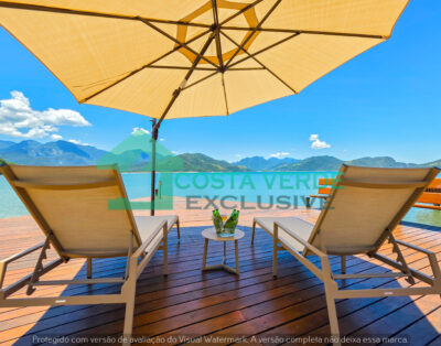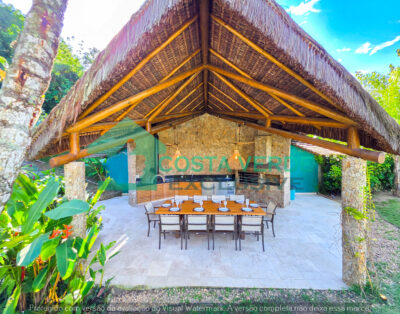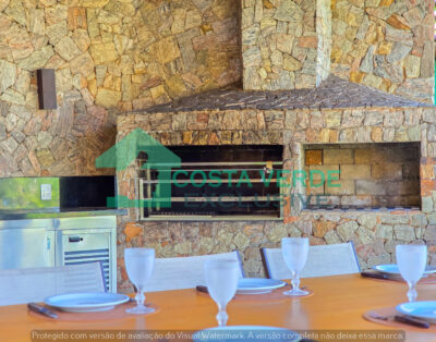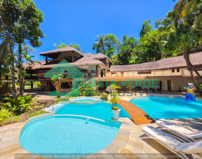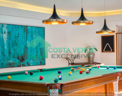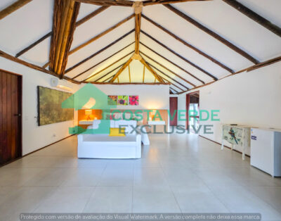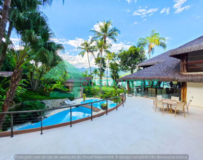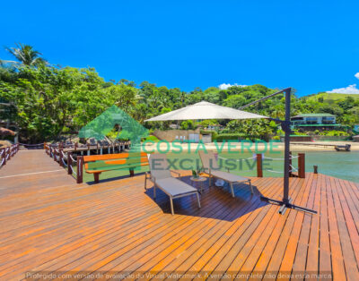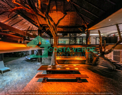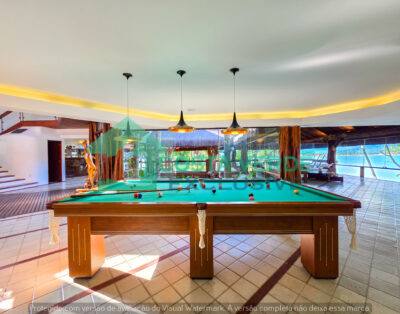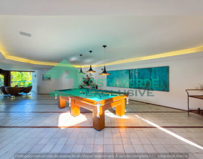 Possuindo 1.000 m² de área construída distribuídos em um terreno de 6 mil m², este belo projeto conta em sua estrutura com 7 suítes climatizadas, sacada, ampla sala, lounge, cozinha americana, área gourmet, salão de jogos, hall de entrada, sauna, vestiário, churrasqueira, forno de pizza, piscina com hidro aquecida, campo de futebol, quadra de basquete, quadra de vôlei de areia, garagem para até 8 carros e deck privativo para atracar embarcações de até 50 pés.